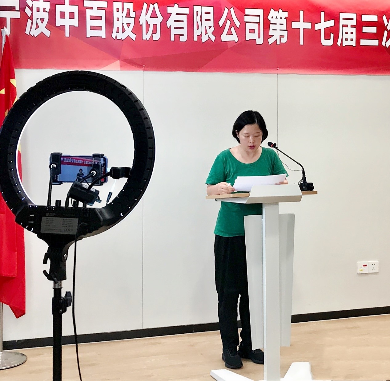 寧波中百股份有限公司第十七屆三次職工(會員)代表大會于2020年7月28日在公司大會議室舉行,由于新冠肺炎疫情防控需要,本次會議采取線上線下結合形式召開。