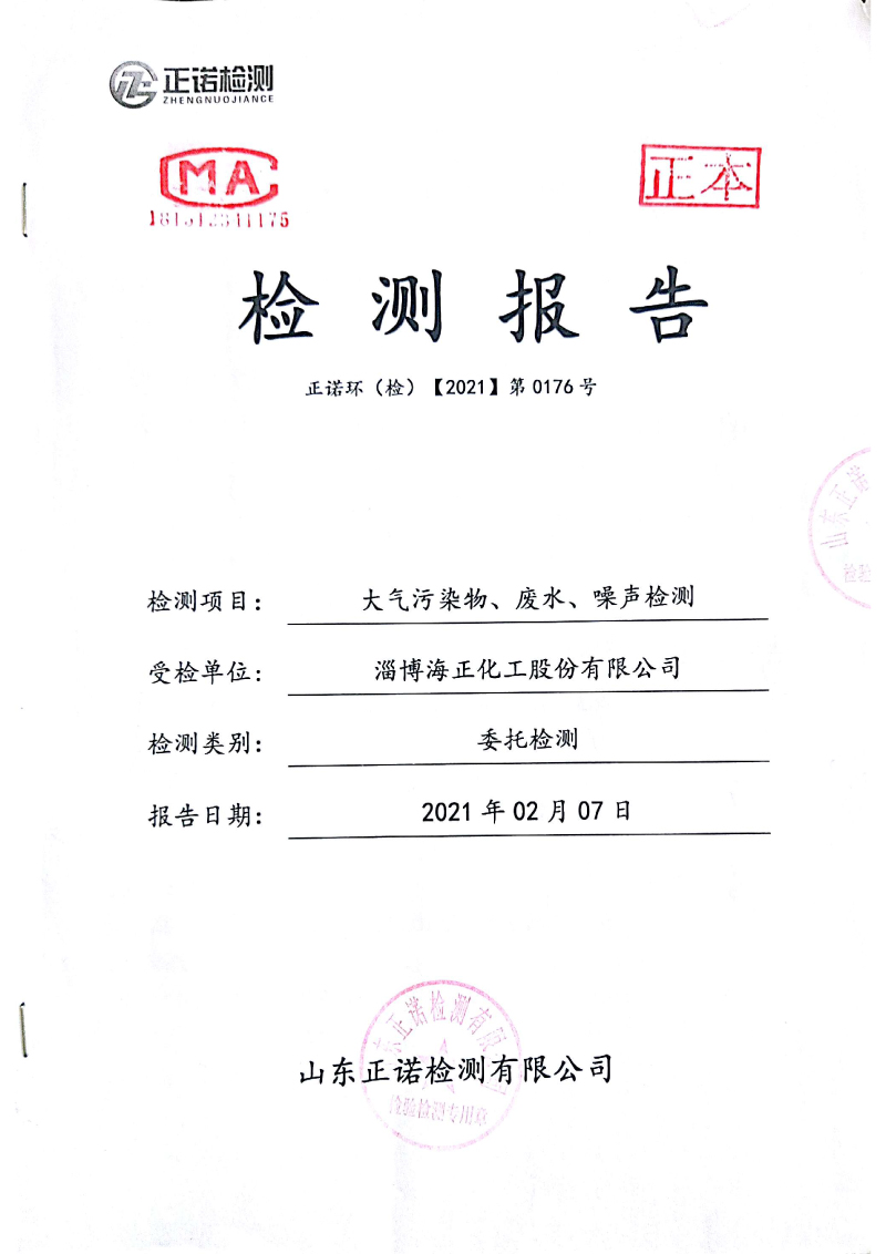 2021年2月大氣污染物、廢水、噪聲檢測報(bào)告